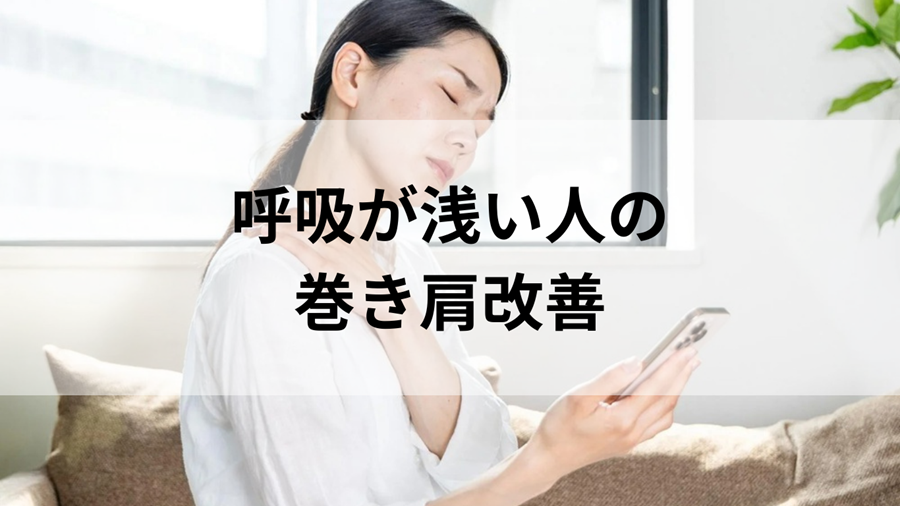 呼吸が浅い人に多い巻き肩の特徴 呼吸が浅い方は、姿勢の特徴として「巻き肩」になっているケースが多く見られます。 巻き肩とは肩が前に入り、胸が閉じた状態の姿勢のことです。 この姿勢が続くと胸郭の動きが小さくなり、呼吸がさらに浅くなるという悪循... -
