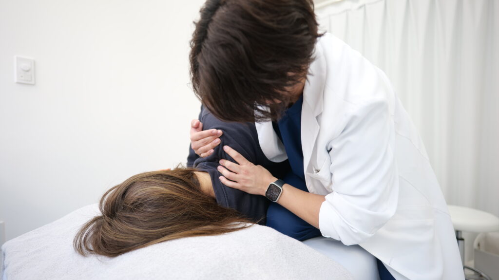 肩こり・姿勢・可動域を丁寧に確認し、胸郭・肩甲骨・肩のバランスを整えることで、巻き肩による負担を根本から軽減します。